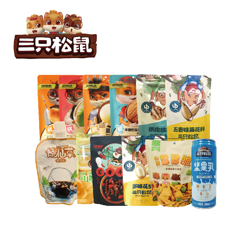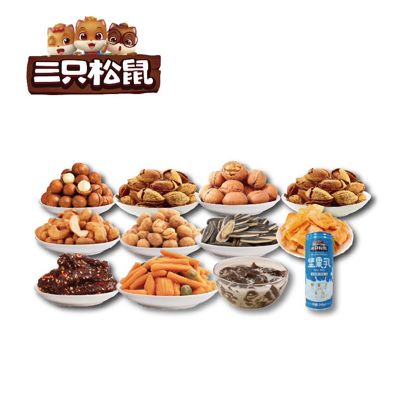 开心果88g 夏威夷果110g 炭烧腰果100g 手剥巴旦木110g 纸皮核桃/原味210g 葵花籽/五香味150g 多味花生205g 蜀香牛肉/麻辣味60g 山药脆片/黄瓜味60g 烧仙草/豆花味150g 饮料_坚果乳240ml 松鼠BB脆105g